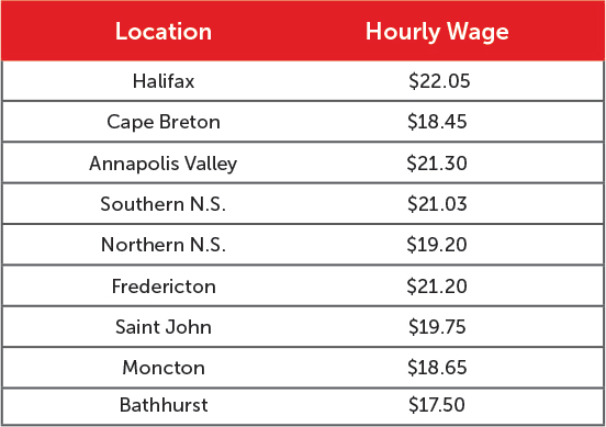 Sources: “Living Wages in Nova Scotia 2021: Working for a living, not living to work” by Christine Saulnier, Canadian Centre for Policy Alternatives, Nova Scotia, November 2021; “Living Wages in New Brunswick 2021,” Human Development Council, November 2021)