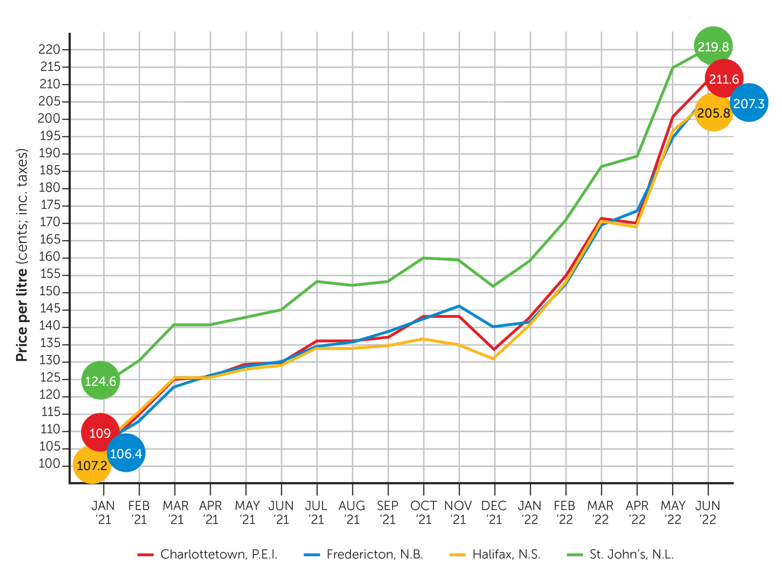 On Prince Edward Island, home heating oil was hit particularly hard this spring. According to the Atlantic Provinces Economic Council, heating oil prices were the main driver of price growth on the Island earlier in the year. P.E.I. was seeing 8.9% year-over-year inflation in March, versus 7.3% for the region and 6.7% nationally. Lower income residents are due to see inflation relief payments in July.