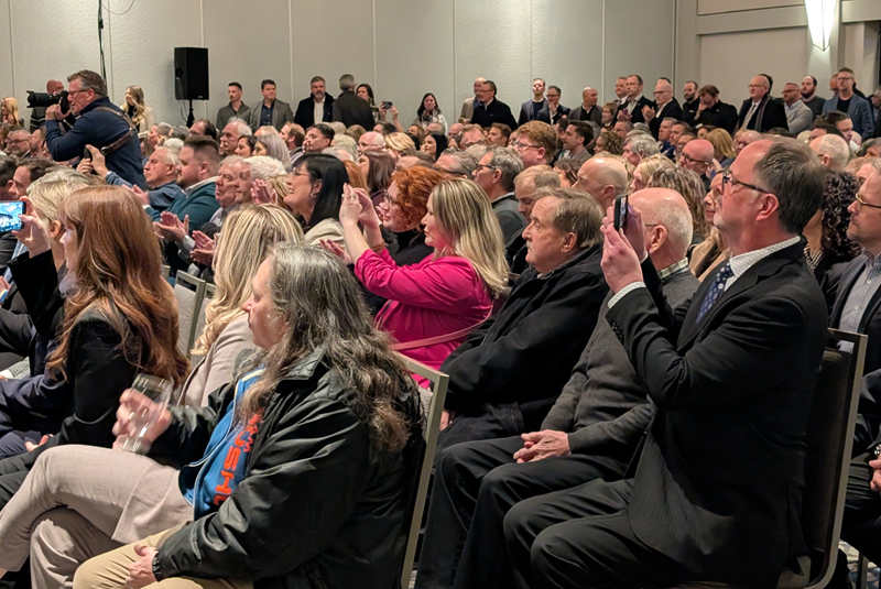 Labour representatives, members of the local business community and others gathered to hear the announcement of a benefits agreement for the Bay du Nord project with the Government of Newfoundland and Labrador. The event was similar to those held for previous offshore oil and gas projects. (Photo by Ashley Fitzpatrick/Atlantic Business Magazine)