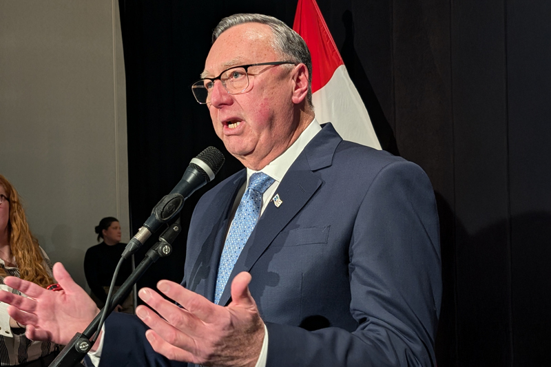 Newfoundland and Labrador’s Premier Tony Wakeham speaks at an event to mark the signing of a benefits agreement with the province for the Bay du Nord offshore oil development at the Delta Hotel and Conference Centre in St. John’s on Tuesday evening. (Photo by Ashley Fitzpatrick/Atlantic Business Magazine)